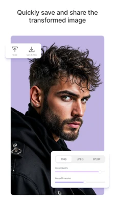 * You can easily upload images from your photo gallery and download the transformed picture in its original resolution.