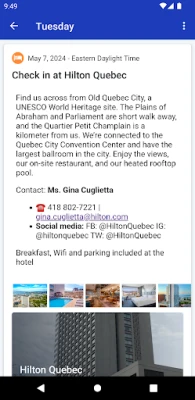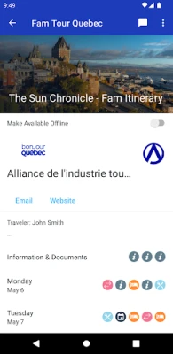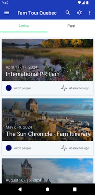 • See a summary of your trip, with the number of amazing activities you have planned each day. • On each day, view detailed information for each activity. • Quickly pull up information, social handles and navigation for the places on your trip. • Chat with your Quebéc Delegate directly in the app.
