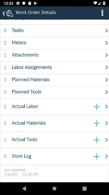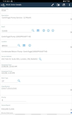 Users can review task details, report labor actuals, tool or material usage, and maintain the work log. Depending on how the app is configured, users can also view a map of their work orders and obtain directions to work order locations. The app supports bar code scanning and voice recognition. Mobile workers can view and change the current classification of a work order. Users can also access the list of specification attributes that are associated with that classification.