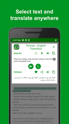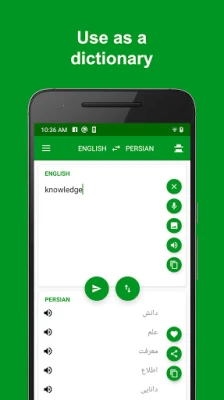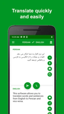 Persian - English translator is an application that help you lookup dictionary and translate words and sentences from Persian to English, or translate English to Persian too. This translator is free and you are able to translate words or sentences quickly, conveniently and easily.