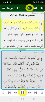 This application presents you the Word of God in different languages: 1) Open Persian Contemporary Bible, 2) Old Persian Bible, 3) Kurdi Sorani, 4) Azerbaijani, 5) Turkish, 6) Arabic, 7) English, 8) Aramaic, 9) Amharic and 10) Russian. In addition, you can download the audio New Testament files and thus listen to the texts being read out for you.