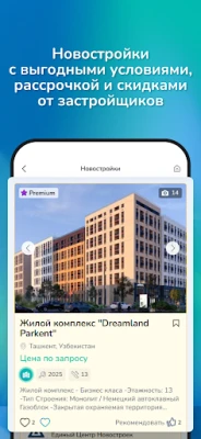 В приложении вы сможете легко находить квартиры, дома и коммерческую недвижимость по всему Узбекистану с помощью удобных фильтров и поиска по ключевым параметрам.