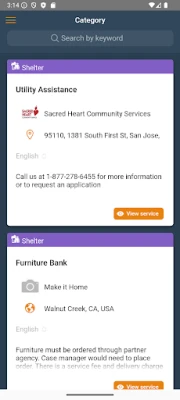 - A map view of aid nearby, shown by category of aid, using color coded icons