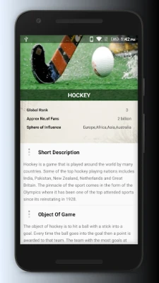 Sports Brief include Information like : Global ranking No of Fans Sphere of influence Object Of Game Players & Equipment Scoring Winning the Game Rules of Game