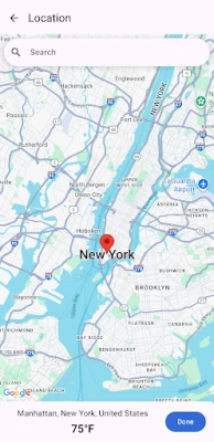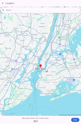 • Location (optional): Used to automatically show the weather for your current location. You can also choose a custom location manually from the map — no permission is required for that.