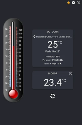 Thermometer++ is a fast, accurate thermometer app that shows both room temperature and live outdoor conditions on one screen. Indoor values come from your phone’s sensors, while outdoor data is blended from several local weather stations using AI for precision.